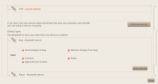 Here as I mentioned earlier you can sync your Evolution PIM data with online services, but you can also do direct sync with Bluetooth paired phones as seen in screenshot.